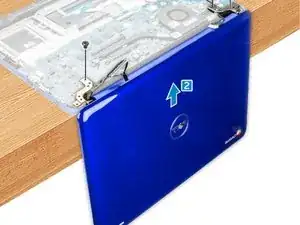 Удалите винты M2xL4 [1] и поднимите узел дисплея, чтобы отделить его от компьютера.