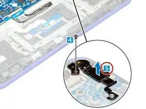 Установите разъем питания на системную плату и затяните винт, чтобы закрепить его на шарнире дисплея.
