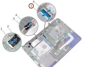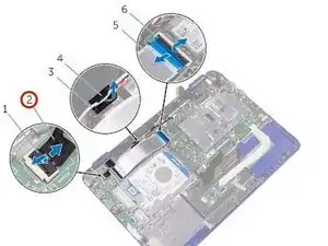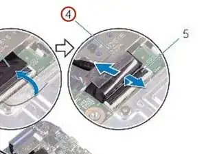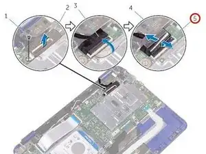 Поднимите кронштейн кабеля дисплея с системной платы.