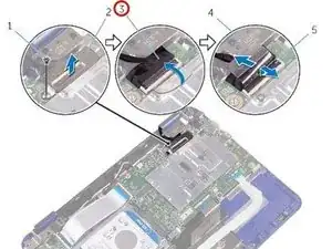 Вставьте кабель дисплея в его разъём на системной плате и прижмите защёлку, чтобы зафиксировать кабель.