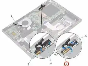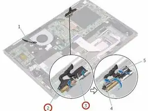 Вставьте кабель дисплея и кабель платы сенсорного экрана в соответствующие разъёмы на системной плате и закройте защёлки, чтобы зафиксировать кабели.