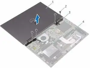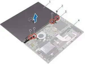 Удалите винты, которыми узел дисплея крепится к узлу подставки для рук.