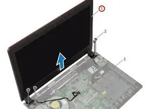 Удалите винты, которыми узел дисплея крепится к основанию компьютера.