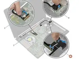 Снимите ленту и отсоедините кабель дисплея от системной платы.