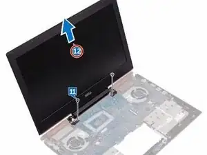 Поднимите узел дисплея с основания корпуса компьютера.