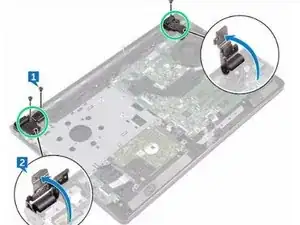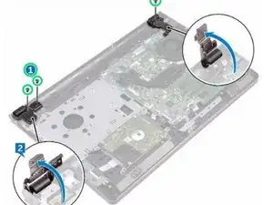 Установите обратно три винта (2.5x8), которые закрепляют шарниры дисплея на узле подставки для рук.