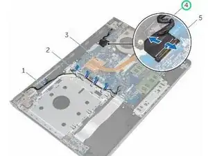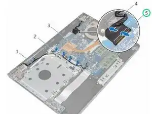 Поднимите защёлку и отсоедините кабель дисплея от системной платы.