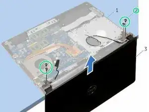 Поднимите узел дисплея и снимите его с узла подставки для рук.