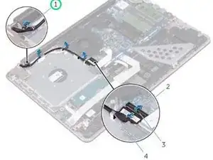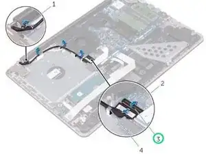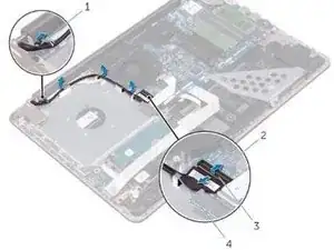 Проложите кабель дисплея через направляющие на опоре для запястий и клавиатуре.