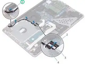Запомните путь прокладки кабеля дисплея и снимите кабель с направляющих.