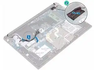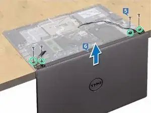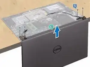 Вверните четыре винта (M2.5x5), которые закрепляют узел дисплея на панели подставки для рук и клавиатуре.