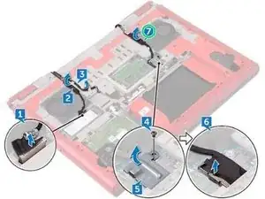 С помощью язычка отсоедините кабель дисплея от системной платы.