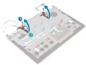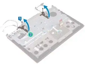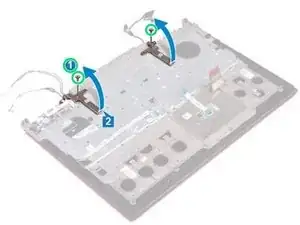 Удалите два винта (M2.5x5), фиксирующие петли дисплея к сборке подлокотника.