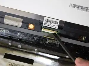 Вставьте пластиковую лопатку в паз вокруг экрана ноутбука и аккуратно отведите пластиковую рамку от дисплея.