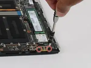 На другой стороне ноутбука снимите два винта 3,5 мм с помощью крестовой отвертки Phillips #00.