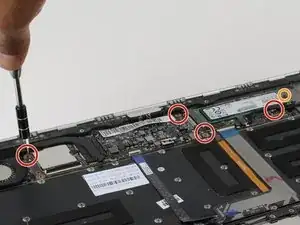 Снимите шесть винтов 3,5 мм, расположенных вокруг аккумулятора, используя крестовую отвертку Phillips #00.