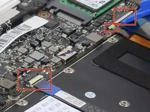 Используйте пластиковый инструмент для вскрытия, чтобы отсоединить кабели.