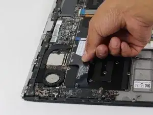 Используя пинцет или пальцы, отсоедините чёрный кабель питания аккумулятора, сжав по обе стороны разъём и потянув в сторону аккумулятора.