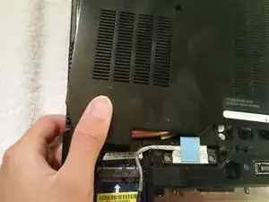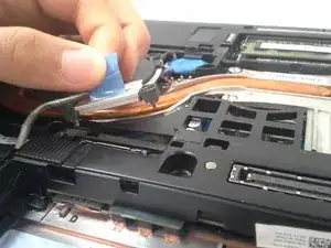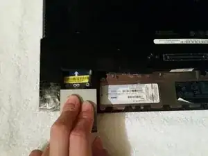 Отключите кабель дисплея от материнской платы, захватив синюю язычок между большим и указательным пальцем и аккуратно потянув вверх.