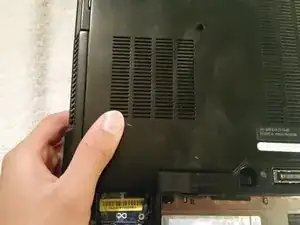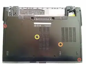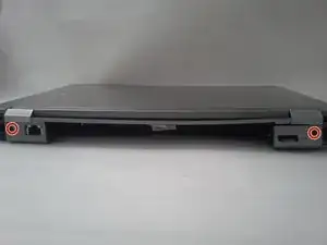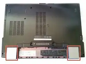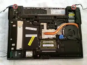 Удалите два винта Phillips 5 мм, расположенные в правом и левом верхних углах ноутбука.