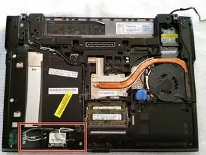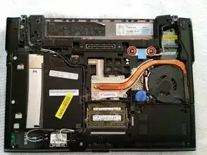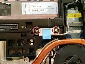 Ослабьте два винта Phillips 5 мм рядом с правым верхним углом, которые фиксируют кабель дисплея на материнской плате.