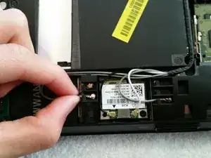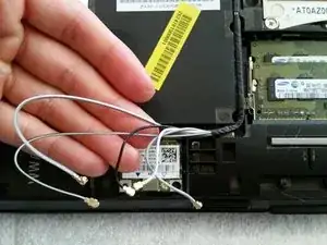 Аккуратно проденьте провода, отсоединённые на предыдущем шаге, через кронштейны, чтобы полностью освободить их от ноутбука.