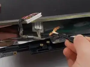 После освобождения этих двух разъёмов экран должен быть электрически отсоединён от остальной части ноутбука.
