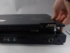 Поднимите всю верхнюю часть и отложите нижнюю половину ноутбука в сторону.
