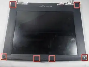 В каждом углу есть серебристый винт длиной 1 см, соединяющий рамку экрана с корпусом ноутбука. Удалите их крестовой отвёрткой Phillips #1.