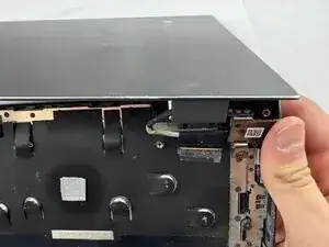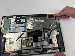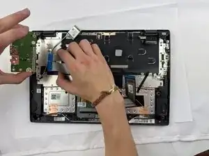 Отсоедините два ленточных кабеля от дочерней платы и извлеките её из ноутбука.