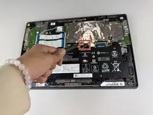 Поднимите аккумулятор и извлеките его из Chromebook.