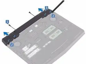 Удалите винт (M2x3), который фиксирует корпус компьютера к узлу подставки для рук.