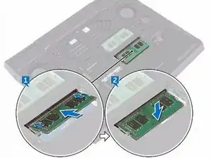 Нажмите на модуль памяти вниз, пока он не защёлкнется на месте.