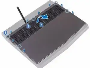Отсоедините нижнюю панель компьютера от узла подставки для ладоней.