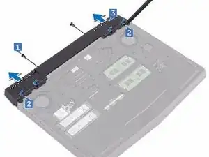 Удалите одиннадцать винтов (M2.5x6L), которые фиксируют корпус компьютера к узлу подставки для рук.