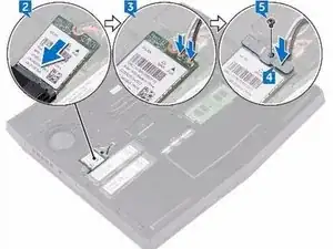Установите винт (M2x3), который фиксирует кронштейн беспроводной карты к самой карте и корпусу компьютера.