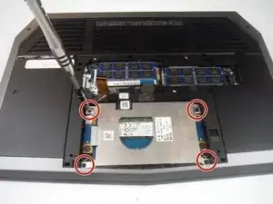 Удалите (4) винта с головкой Phillips 6 мм с кронштейна твердотельного накопителя, используя отвертку Phillips #1.
