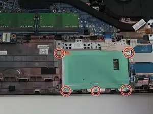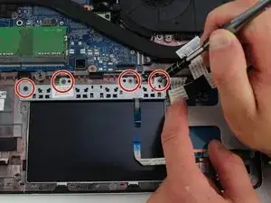 С помощью крестовой отвёртки Phillips #1 открутите пять винтов длиной 2 мм, расположенных вдоль стороны тачпада.