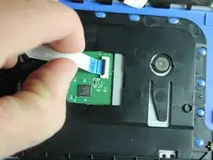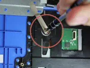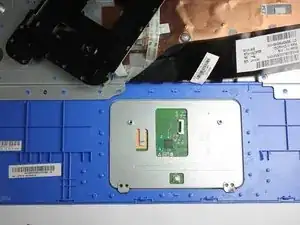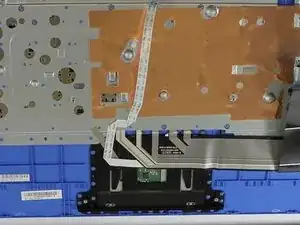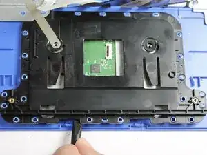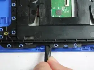 Используйте пластиковую лопатку, чтобы приподнять черную крышку тачпада с синей верхней крышки.
