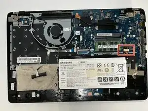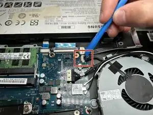 Используя лопатку или инструмент для открытия iFixit, аккуратно снимите кабель с материнской платы.