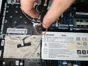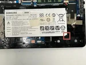 Винты расположены по трём углам аккумулятора, хотя есть дополнительное место для винта на аккумуляторе, который не используется в данной модели ноутбука.