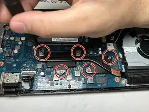 Используя отвертку Phillips #000, открутите пять винтов, которые крепят радиатор к материнской плате.
