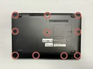 Переверните ноутбук, чтобы получить доступ к нижнему кожуху.