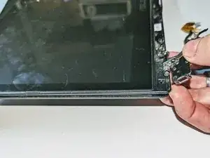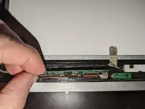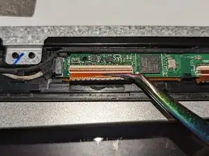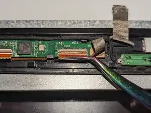 Используйте пинцет с тонкими губками, чтобы вытащить левый шлейф из разъёма.