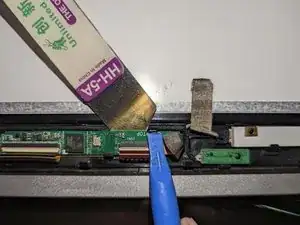 Используя лопатку, сдвиньте разъём в направлении нижней части экрана.