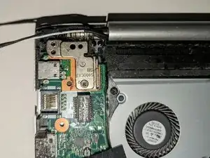 Снимите чёрный экран, закрывающий разъём дисплея и радиатор.