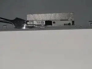 Положите экран на стол. По-прежнему должны быть видны по два провода с каждой стороны в области петель, идущие от верхней части к основанию.