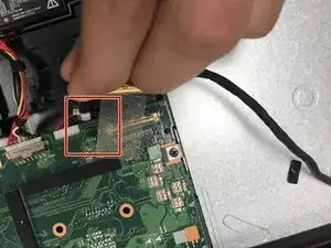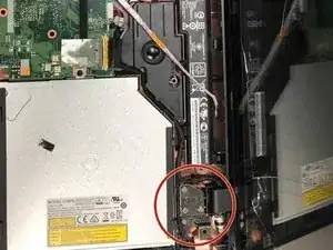 После снятия наклейки вытащите разъем, удерживающий веб-камеру на плате, и веб-камера теперь отключена.