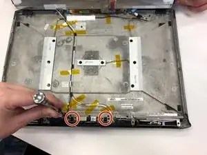 Выкрутите четыре винта в верхней части кронштейна клавиатуры.