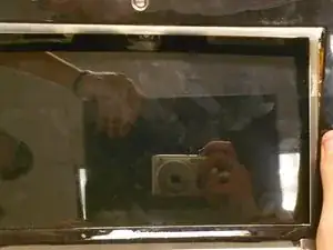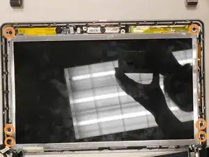 Подденьте рамку вокруг монитора пластиковым инструментом для вскрытия, как показано.